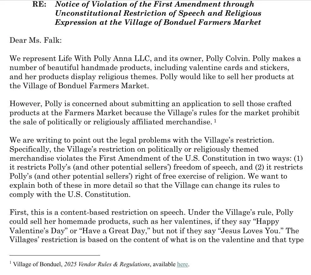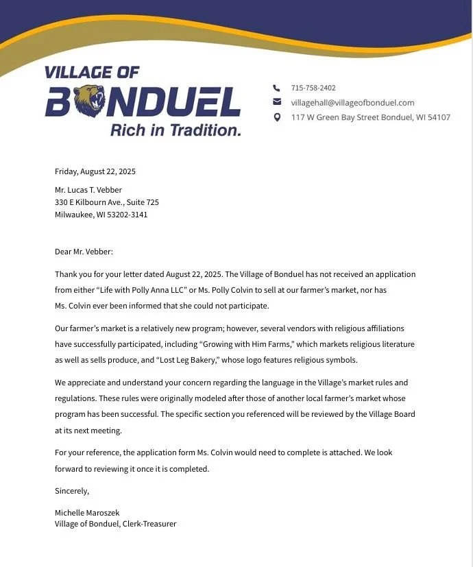 The City run Bonduel Farmer’s Market’s illegL Policy-2025